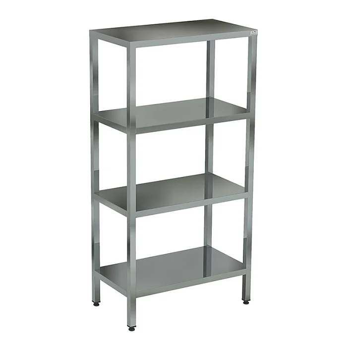 Читать полностью >Стеллаж сплошной сварной СКТ-180/60. Стеллаж выполнен из нержавеющей стали. Он содержит четыре полки, расположенные каскадным образом. Разработанная на предприятии система крепления полок, обеспечивает жёсткость конструкции стеллажа. Каркас стеллажа состоит из ножек, выполненных из нержавеющей квадратной трубы 40х40 мм.