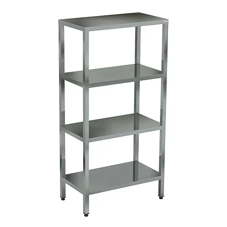 Читать полностью >Стеллаж сплошной сварной СКТ-70/30. Стеллаж выполнен из нержавеющей стали. Он содержит четыре полки, расположенные каскадным образом. Разработанная на предприятии система крепления полок, обеспечивает жёсткость конструкции стеллажа. Каркас стеллажа состоит из ножек, выполненных из нержавеющей квадратной трубы 40х40 мм.