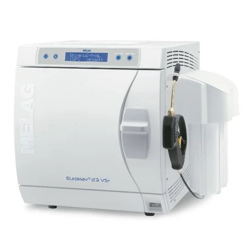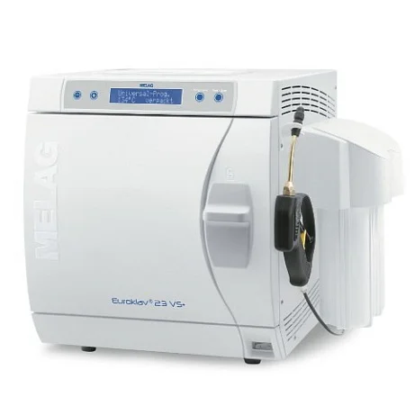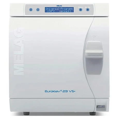 Стерилизатор паровой Melag Euroklav 23 VS+ предназначен для стерилизации упакованных инструментов, имеющих простые отверстия (Hollow Body B) и текстильного материала.