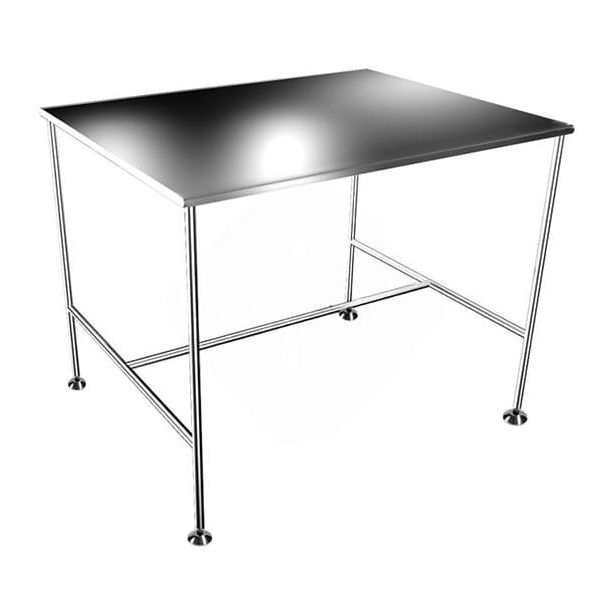 Основа — сварной каркас с прямоугольной рамой. Столешница крепится к раме через отверстия в загнутых вниз краях, благодаря чему посадка получается надежной и ровной. Для максимальной стабильности рабочая поверхность усилена ребрами жесткости — стол выдерживает распределенную нагрузку до 20 кг, что достаточно для стандартного набора инструментов и принадлежностей при большинстве процедур.