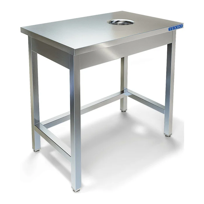 Стол для сбора отходов СПС-122/607 — это практичное и продуманное решение для поддержания чистоты на любой профессиональной кухне. Его главная особенность — удобное центральное отверстие диаметром 180 мм, куда можно моментально сметать пищевые отходы прямо во время готовки.