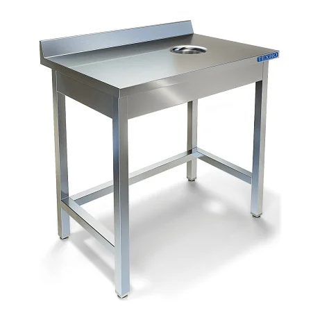 Стол для сбора отходов СПС-222/600 — находка для вашей кухни. Удобное центральное отверстие диаметром 180 мм позволяет быстро и аккуратно сметать пищевые отходы, а высокий борт (70 мм) надежно удерживает всё содержимое на столешнице, не давая ему просыпаться мимо.