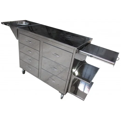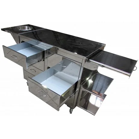 В оснащение стола входят семь выдвижных ящиков, оптимизирующих хранение инструментов и расходных материалов. Вспомогательная боковая выдвигающаяся полка и две съемные полки под ней добавляют дополнительный функционал, а также имеется съемная полка с чашкой для гипсования. Стол гипсовочный СГ-1 Я сочетает в себе функциональность и прочность, что делает его идеальным выбором для медицинских учреждений.