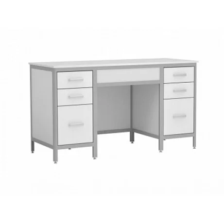 Стол лабораторный АСК СЛ.02.00 Стандарт (разборный) с двумя опорными тумбами предназначен для оборудования рабочего места в медицинских лабораториях. Каждая тумба оборудована тремя выдвижными ящиками. Каркас стола изготовлен из алюминия, в качестве обшивки используется ЛДСП. Материалом для столешницы служит МДФ толщиной 16 мм. Высота ножек регулируется. Только в магазине МедМебель можно заказать стол лабораторный АСК СЛ.02.00 по самой минимальной цене. Достаточно оформить заказ на сайте и курьер доставит товар в любую точку Москвы.