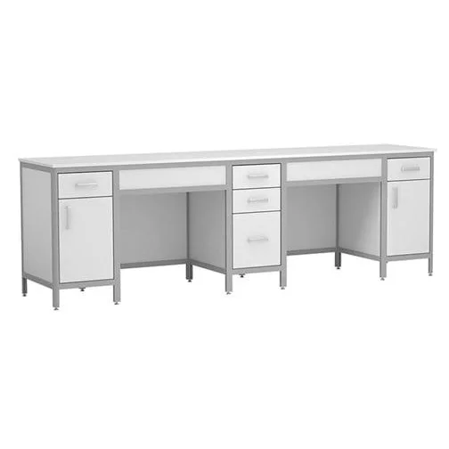 Стол лабораторный АСК СЛ.03.00 имеет три тумбы. Боковые тумбы оснащены верхними выдвижными ящиками и отделениями с полкой и распашными дверками. Центральная тумба оборудована тремя выдвижными ящиками. Каркас повышенной прочности изготовлен из алюминиевого закругленного профиля. В качестве обшивки используется ЛДСП. Столешница сделана из МДФ. Магазин медицинской мебели МедМебель реализует стол лабораторный АСК СЛ.03.00 по минимальной цене. Оформите заказ прямо сейчас. Доставка по всей Москве курьером.