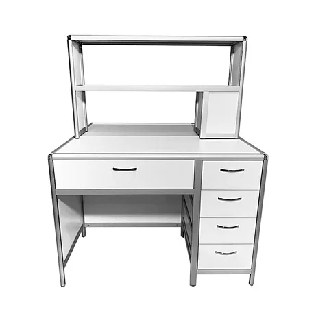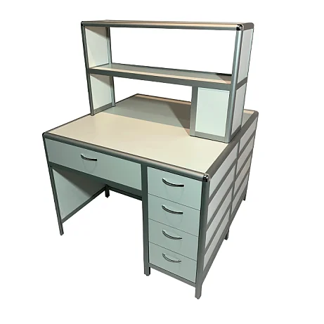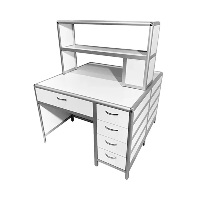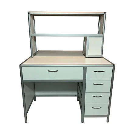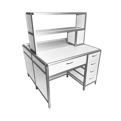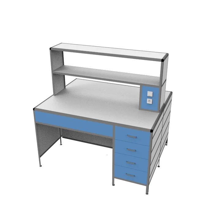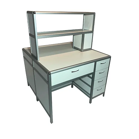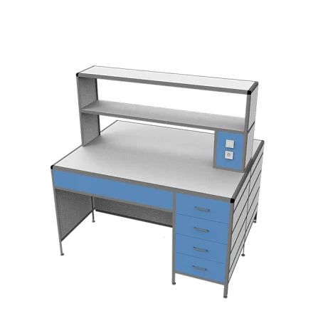 Стол лабораторный островной MED 11.002al позволит организовать сразу два рабочих места для сотрудников лабораторий и других медучреждений. Каркас из алюминиевого профиля обладает отличной прочностью и жесткостью. Для обшивки стола используется ЛДСП (8 мм). Столешница изготавливается из ЛДСП толщиной 16 мм. Под столешницей установлены вместительный выдвижной ящик и боковая тумба с выдвижными ящиками. Регулировка высоты ножек выполняется с помощью винтовых опор. На столешнице устанавливается надстройка с двумя сквозными полками. Интернет-магазин «МедМебель» установил самую демократичную цену на стол лабораторный островной MED 11.002al. В регионы России отправка товаров возможна с помощью транспортных компаний, по всей Москве работает курьер.