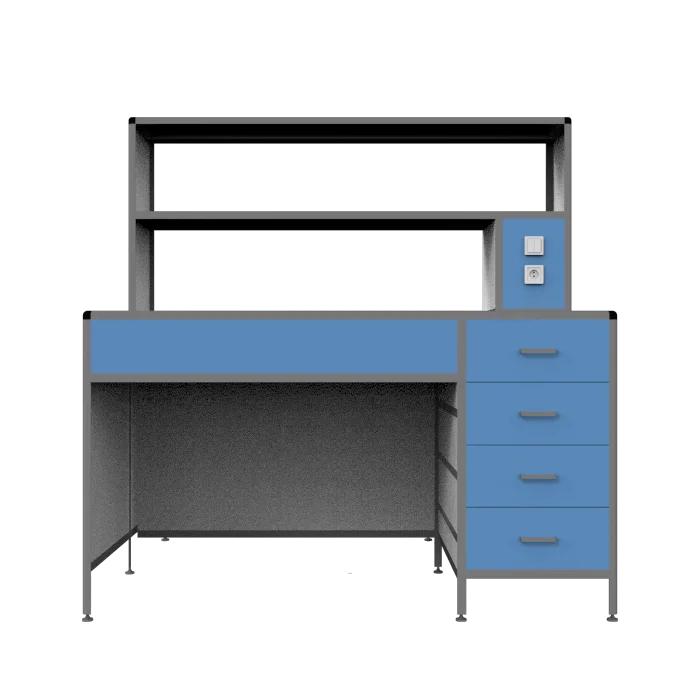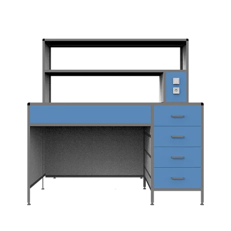 Под рабочей поверхностью каждого места установлен просторный выдвижной ящик, что обеспечивает удобное хранение и организацию рабочего пространства.