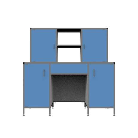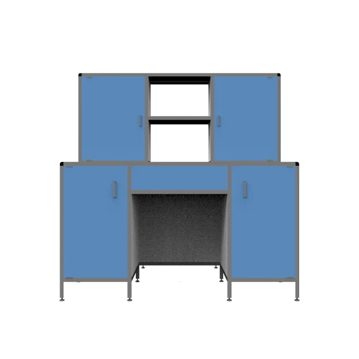 Каждое рабочее место этого стола оборудовано тумбой с распашной дверкой и полкой внутри, обеспечивая удобное хранение необходимых материалов и инструментов. Отделения с дверками сквозные, то есть без задней стенки, что обеспечивает легкий доступ к содержимому.