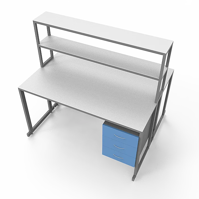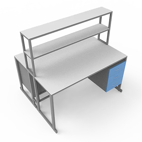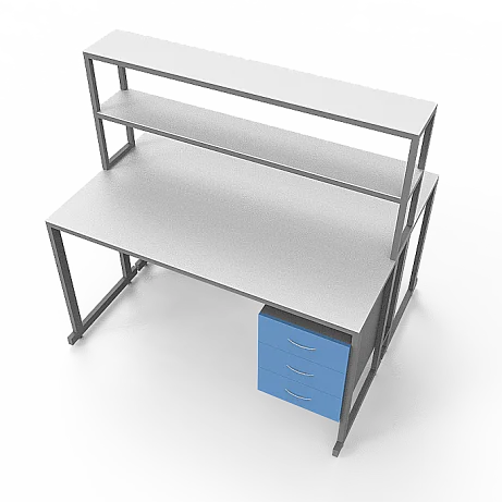 Надстройка стола с двумя полками из ЛДСП толщиной 16 мм предоставляет дополнительное пространство для хранения и организации рабочих материалов. Размер надстройки - 1200х250х750 мм, и на каждую полку можно равномерно распределить нагрузку до 10 кг.