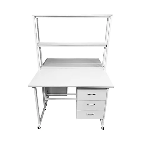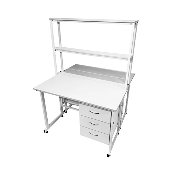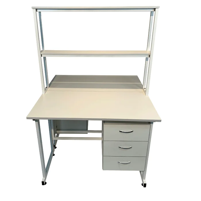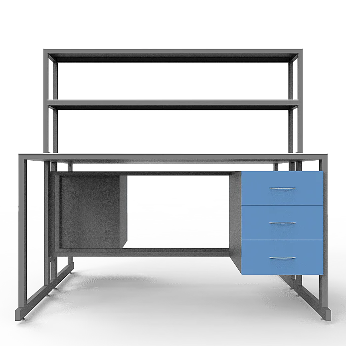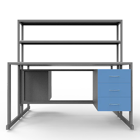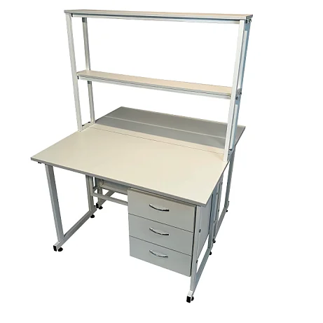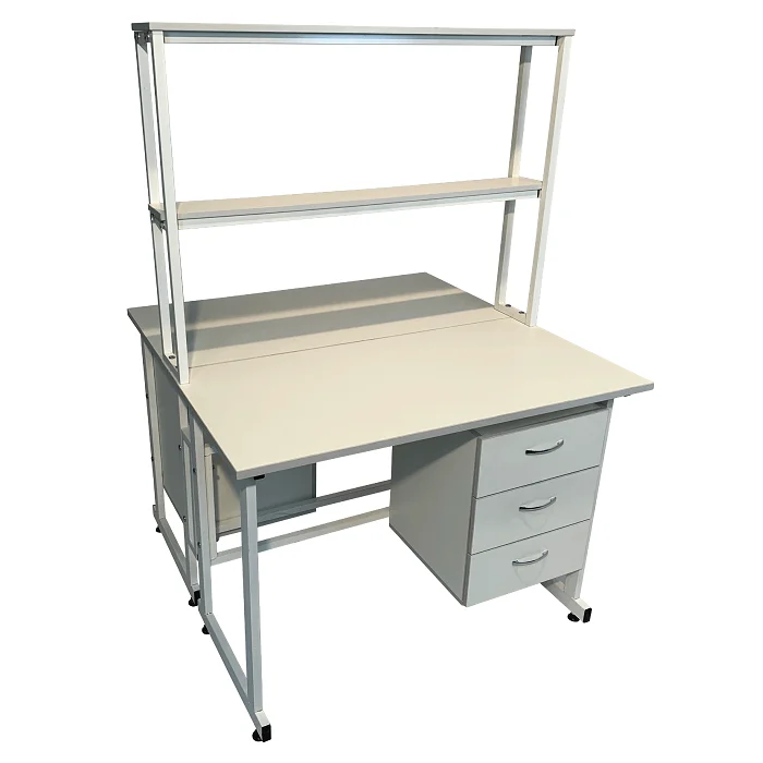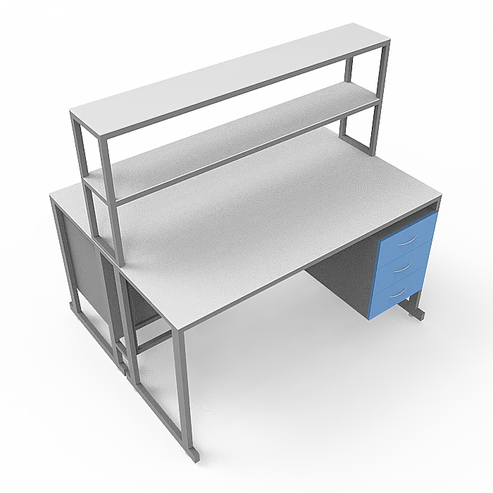 Стол имеет удобные размеры, обеспечивающие оптимальные условия для работы. Регулируемые по высоте опоры высотой 50 мм используются для компенсации неровностей напольного покрытия и обеспечения стабильности конструкции.