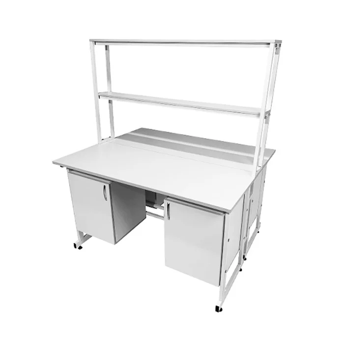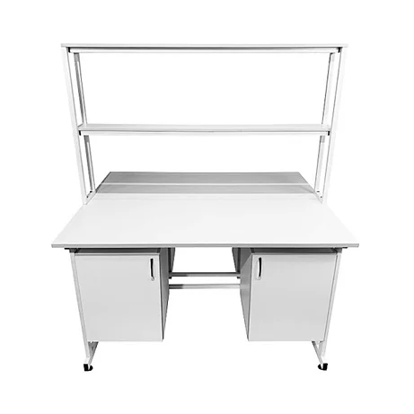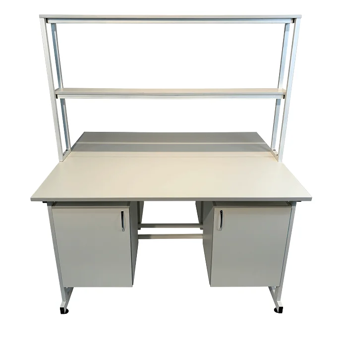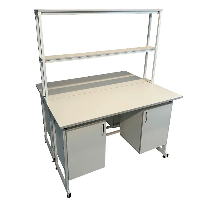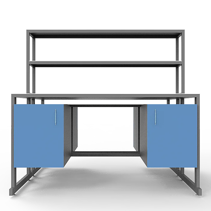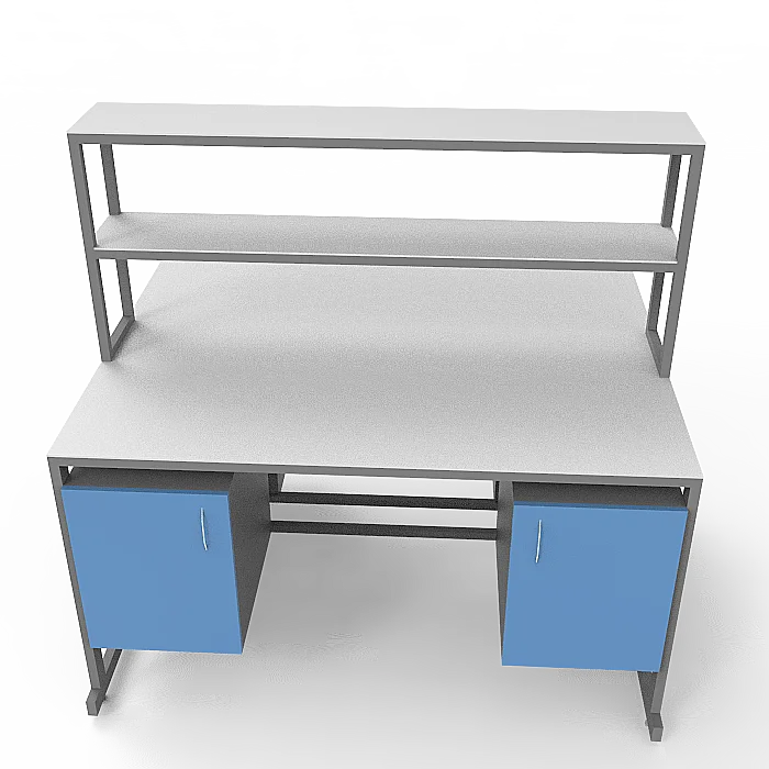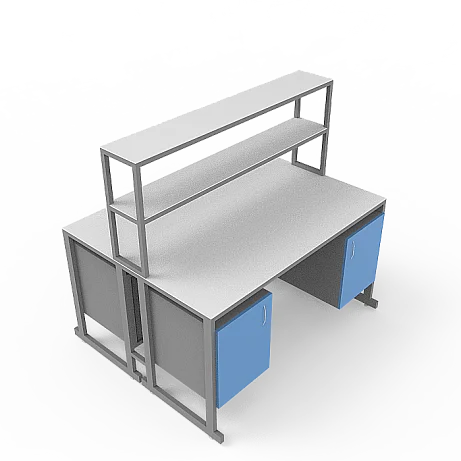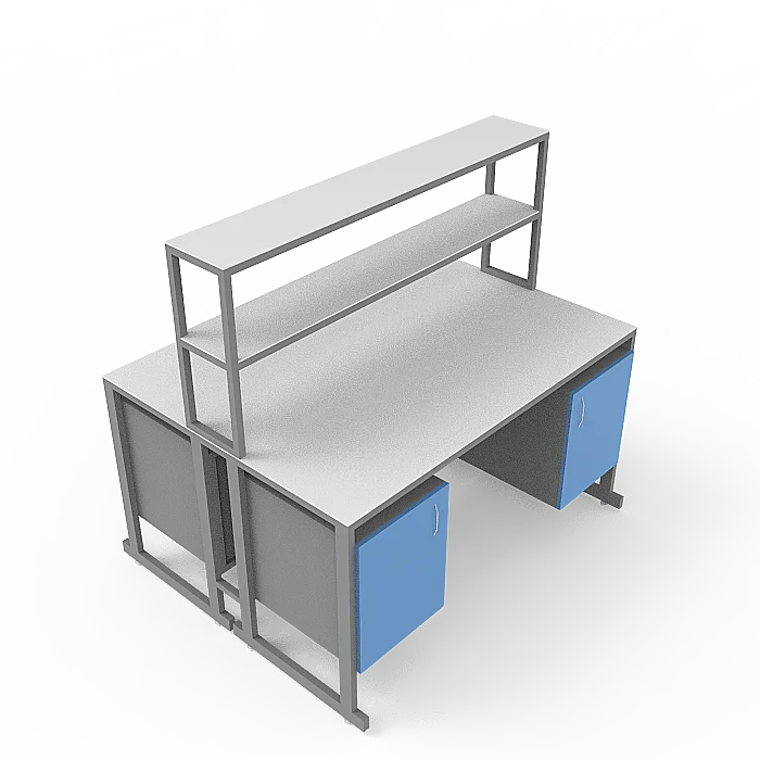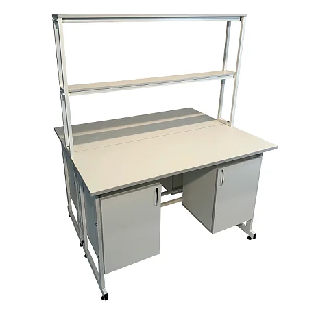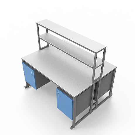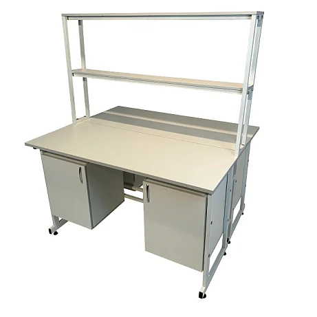 Стол лабораторный островной Сло 22.016 удобно использовать в лабораториях или других медучреждениях для организации рабочего места сотрудников. Конструктивные особенности стола позволяют за ним разместить двух сотрудников, при этом максимально оптимизируя рабочее пространство лаборатории. Каждое рабочее место оборудовано двумя тумбами с дверками и надстройкой с двумя сквозными полками, которая устанавливается на столешнице. Каркас выполнен из стального профиля 25Х50 мм и покрыт порошковой краской. Материалом для столешницы служит ЛДСП толщиной 22 мм. Ножки оснащены винтовыми опорами. Приобретайте стол лабораторный островной Сло 22.016 по цене производителя в интернет-магазине «МедМебель». Возможна отправка товаров по России транспортными компаниями. По всей Москве доставкой занимается курьерская служба.