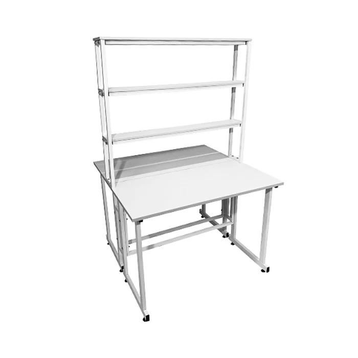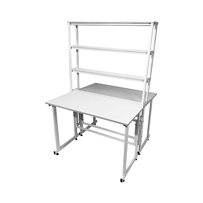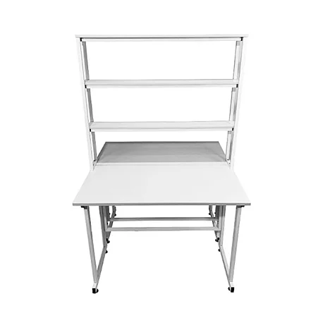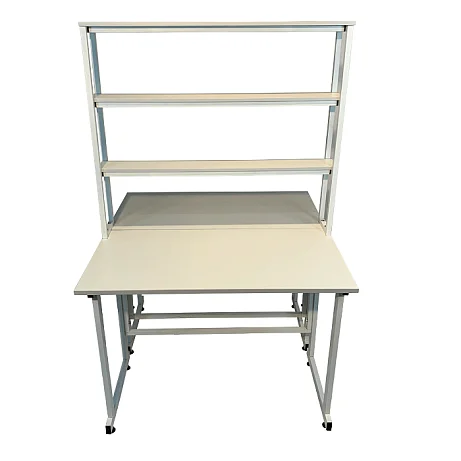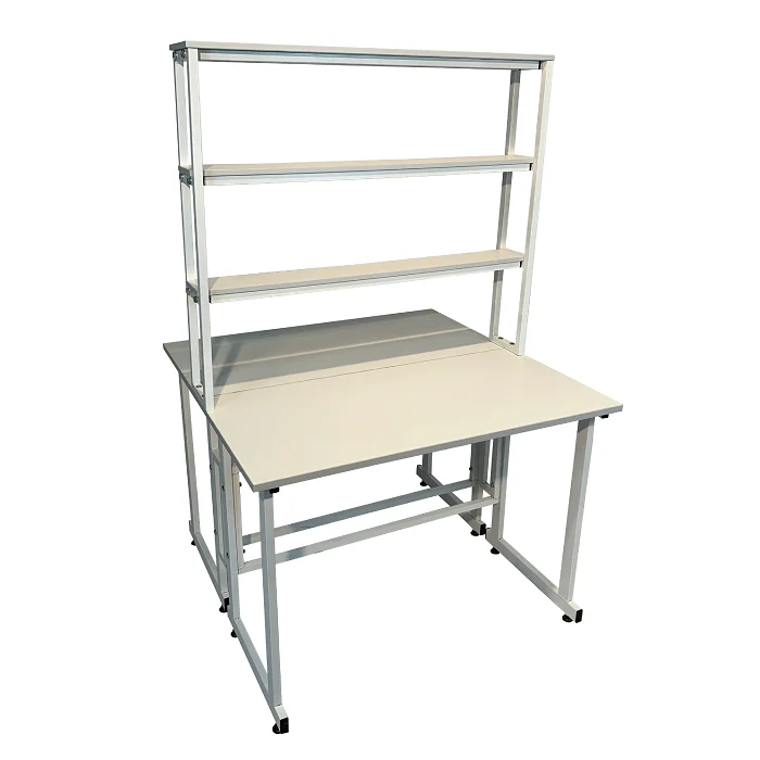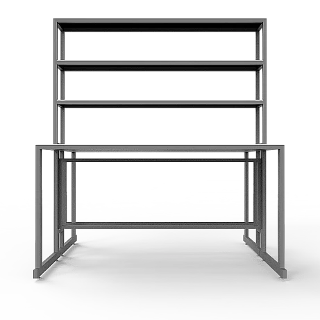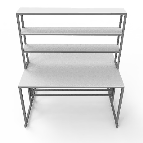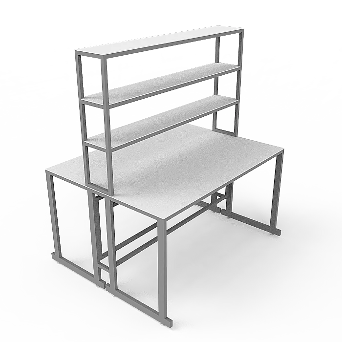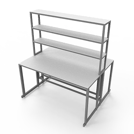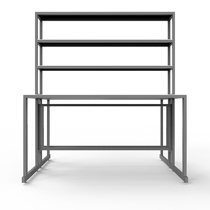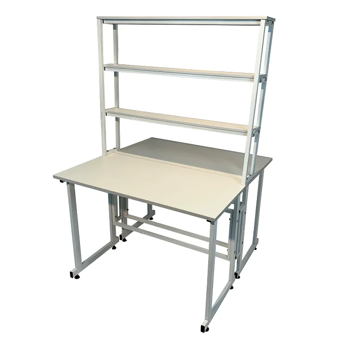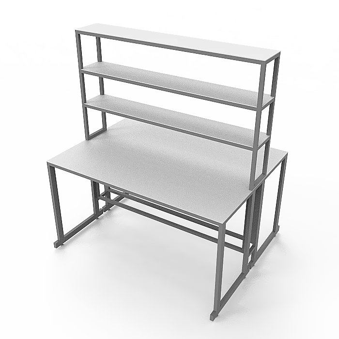 Особенностью этой модели является наличие надстройки с тремя полками посередине столешницы, предоставляющей дополнительное пространство для хранения и организации необходимых материалов. Надстройка выполнена из ЛДСП толщиной 16 мм и способна выдерживать нагрузку до 10 кг. Размеры надстройки составляют 1200х250х1000 мм, что позволяет эффективно использовать вертикальное пространство.