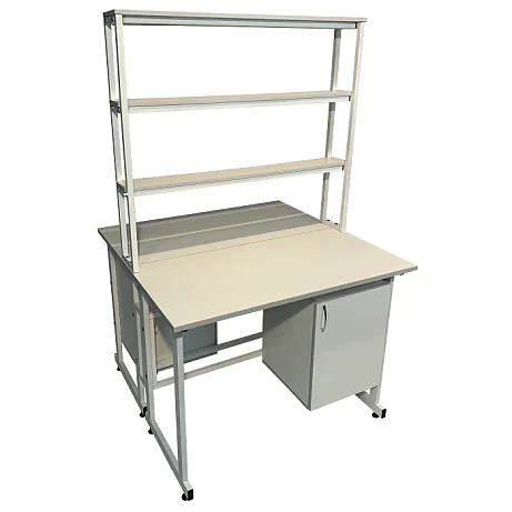Оптимальным вариантом рациональной организации рабочих мест лаборантов является установка стола лабораторного островного Сло 22.020. За ним могут разместиться сразу два сотрудника, мебель обеспечивает свободный подход с любой стороны. На столешнице, выполненной из ЛДСП (22 мм), установлена надстройка с тремя сквозными полками, на которой можно удобно размещать предметы и химикаты. На противоположных сторонах стола размещены две тумбы с дверками. Каркас изготавливается из стального профиля сечением 25Х50 мм, который покрыт порошковой краской. С помощью опор-регуляторов можно легко компенсировать неровности напольного покрытия. Купить стол лабораторный островной Сло 22.020 по цене производителя можно в интернет-магазине «МедМебель». Отправка товаров в любую точку России осуществляется транспортными компаниями. В пределах Москвы доставка возможна курьером.