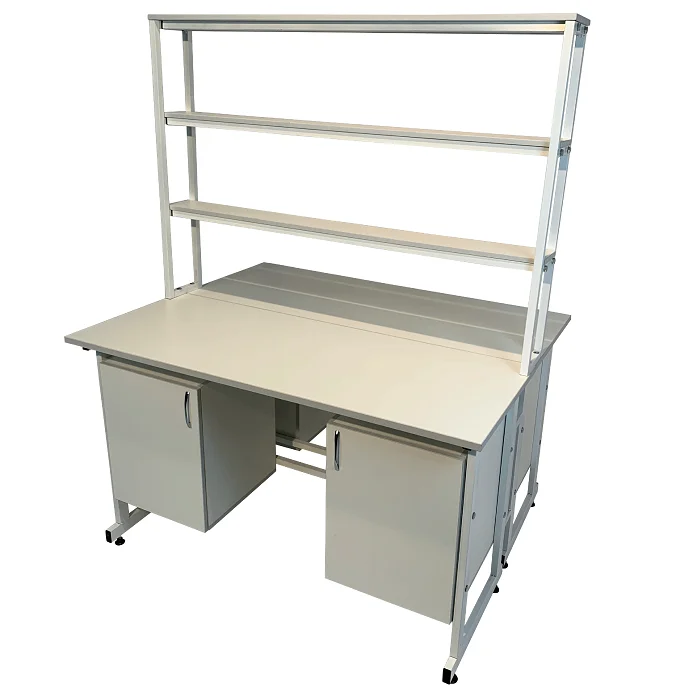 Стол лабораторный островной Сло 22.022 позволяет рационально организовать рабочие места сразу для двух сотрудников лабораторий или других медучреждений. Каждое рабочее место оборудовано двумя боковыми тумбами с дверками и общей надстройкой с тремя сквозными полками, которая устанавливается посередине столешницы. Материалом для столешницы служит ЛДСП толщиной 22 мм. Каркас выполнен из стального профиля с порошковым покрытием сечением 25Х50 мм. Ножки оснащены опорами-регуляторами, позволяющими компенсировать неровности напольного покрытия. Приобрести с выгодой стол лабораторный островной Сло 22.022 вы можете в интернет-магазине «МедМебель». Оформите заказ на сайте и воспользуйтесь услугой адресной доставки по Москве. Отправка товаров в другие города России производится транспортными компаниями.