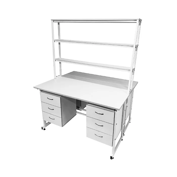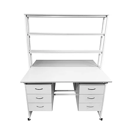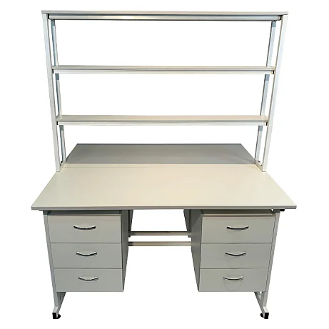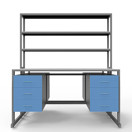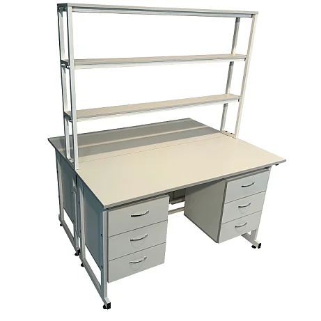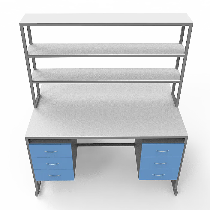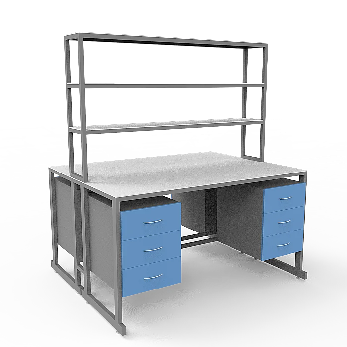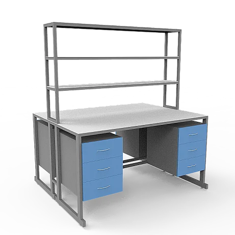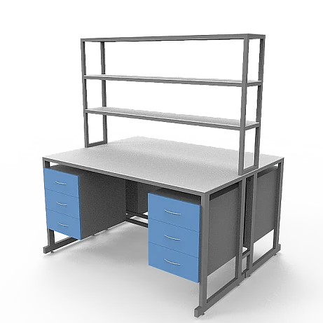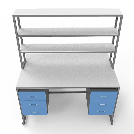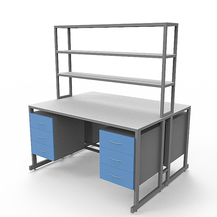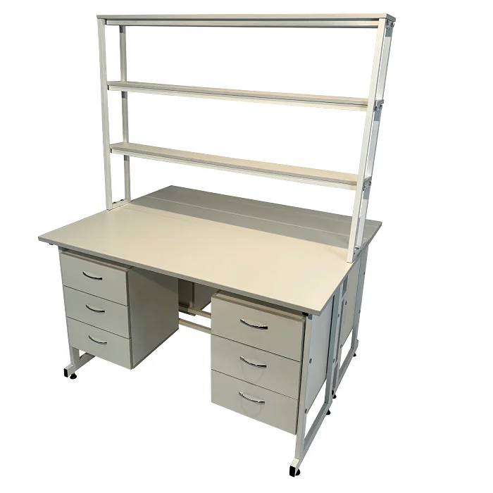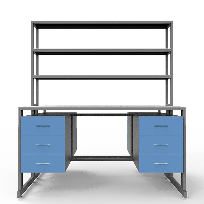 Стол лабораторный островной Сло 22.023 помогает оптимизировать пространство лабораторий и организовать рабочее место для двух сотрудников. Столешница выполнена из ЛДСП толщиной 22 мм и оборудована надстройкой с тремя полками, на которых удобно размещать химикаты и другие предметы. Каждое рабочее место оборудовано двумя тумбами с выдвижными ящиками. Для изготовления каркаса используется стальной профиль 25Х50 мм, который покрыт порошковой краской. Высота ножек может регулироваться с помощью винтовых опор. Покупать стол лабораторный островной Сло 22.023 выгоднее всего в интернет-магазине производителя медицинской мебели «МедМебель». Доставка товаров по России осуществляется транспортными компаниями, по Москве работает курьерская служба.
