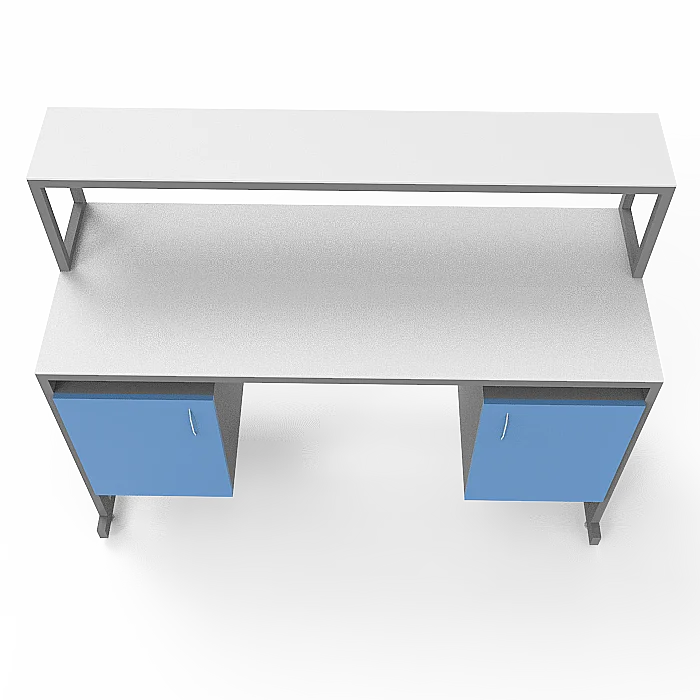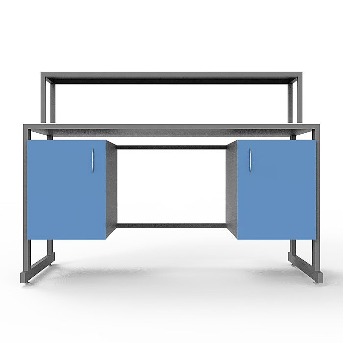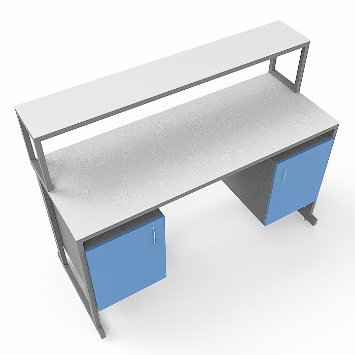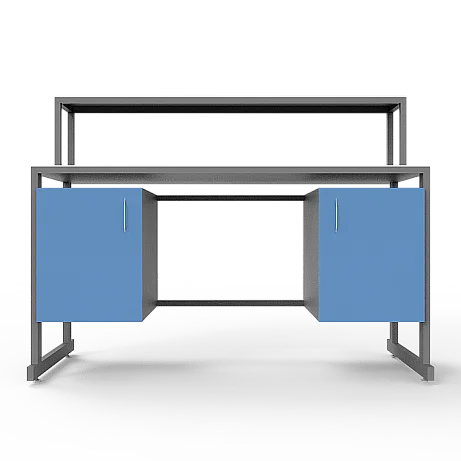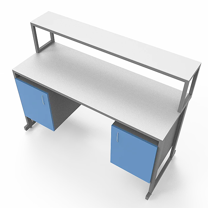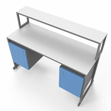 Особенности стола включают в себя удобную надстройку с полкой, а также 2 тумбы под столешницей, каждая с дверцей, что обеспечивает удобное размещение необходимых материалов и принадлежностей. Регулируемые по высоте ножки с винтовыми опорами позволяют легко настроить стол на нужную высоту, обеспечивая комфорт и удобство в работе. Столешница из керамогранита обладает повышенной стойкостью к агрессивным химическим веществам, скачкам температуры и механическим воздействиям, что гарантирует долгий срок службы изделия. Каркас из стального профиля, покрытого порошковой краской, обеспечивает прочность и устойчивость конструкции.