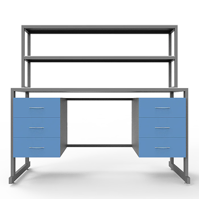 Столешница из керамогранита обладает высокой устойчивостью к химическим веществам, экстремальным температурам и ударам, что делает ее идеальным выбором для лабораторных исследований. Каркас стола выполнен из стального профиля, покрытого порошковой краской, что гарантирует прочность и долговечность конструкции.
