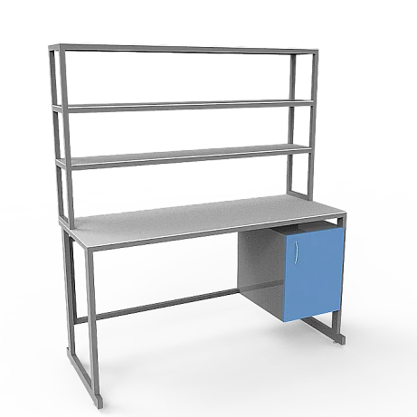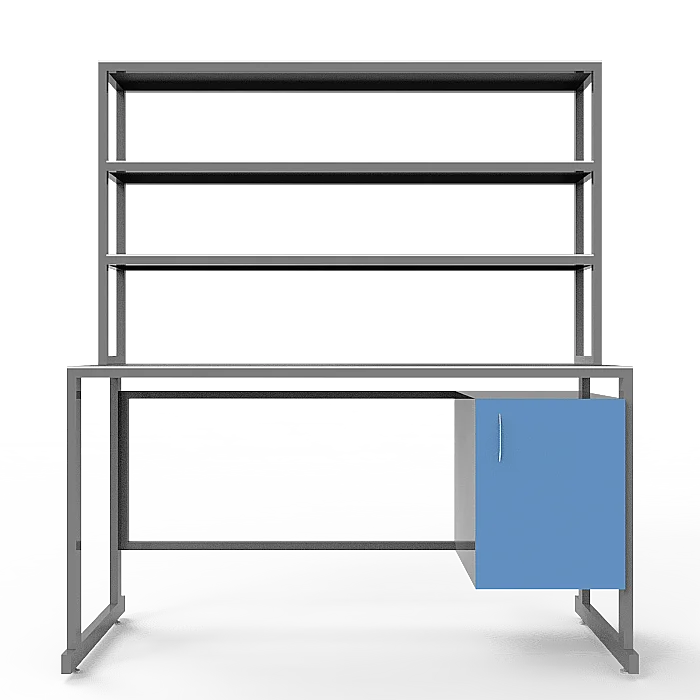Регулируемые по высоте ножки с винтовыми опорами-регуляторами позволяют легко адаптировать стол к индивидуальным предпочтениям пользователя, обеспечивая комфортное рабочее положение. Столешница из керамогранита обладает высокой устойчивостью к химическим воздействиям, скачкам температур и ударам, что делает ее надежным и долговечным материалом для использования в лабораторной среде. Каркас из стального профиля, покрытого порошковой краской, обеспечивает прочность и устойчивость всей конструкции.