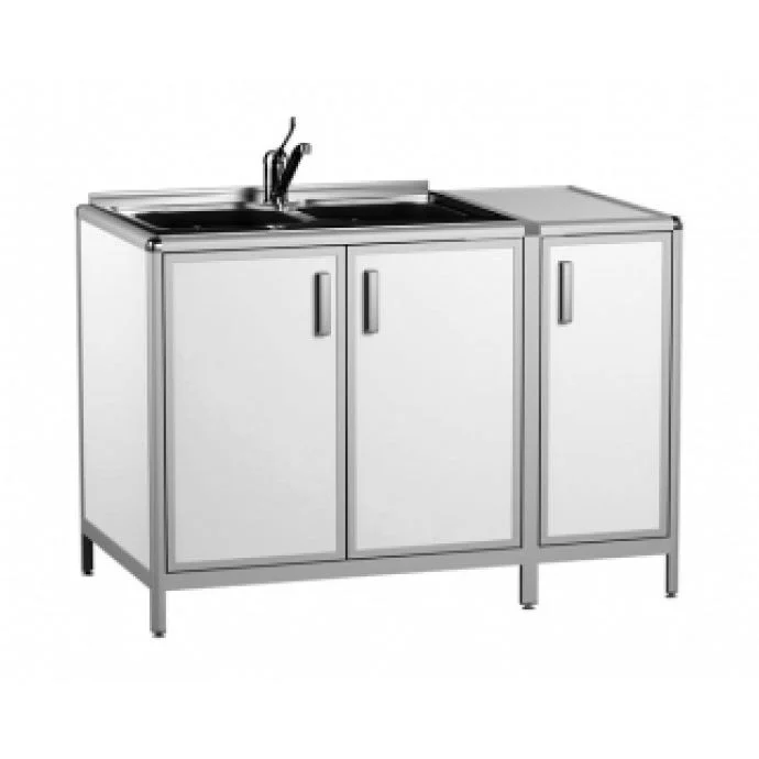 Стол лабораторный с мойкой АСК СЛМ.02.02 (локтевой смеситель) белого цвета поставляется в собранном виде, включает в себя несколько отделений. Есть центральное большое отделение с двумя дверками, также в правой части стола находится отделение с дверкой и полкой. Стол изготовлен из пластика, основанием служит алюминиевый профиль. Есть большая двухчашевая мойка из нержавейки со смесителем. Стол лабораторный с мойкой доступен для заказа и в специализированном магазине МедМебель, где выгодные цены на мебель и очень быстрая доставка.