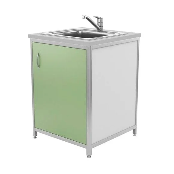 Лабораторный стол с мойкой МК-Л-01 на прочном травмобезопасном металлокаркасе изготовлен из ЛДСП, фасад светло-зеленого цвета с отделкой ПВХ, столешница из ЛДСП и пластика, в нее врезана мойка из нержавеющей стали. Мойка комплектуется сифоном, смесителем и гофрированным сливом. Стол-тумба с дверкой. Устанавливается на регулируемые опоры. Конструкция лабораторного стола разборная. Магазин МедМебель в Москве предлагает приобрести лабораторный стол с мойкой по доступной цене и с доставкой в любой регион.