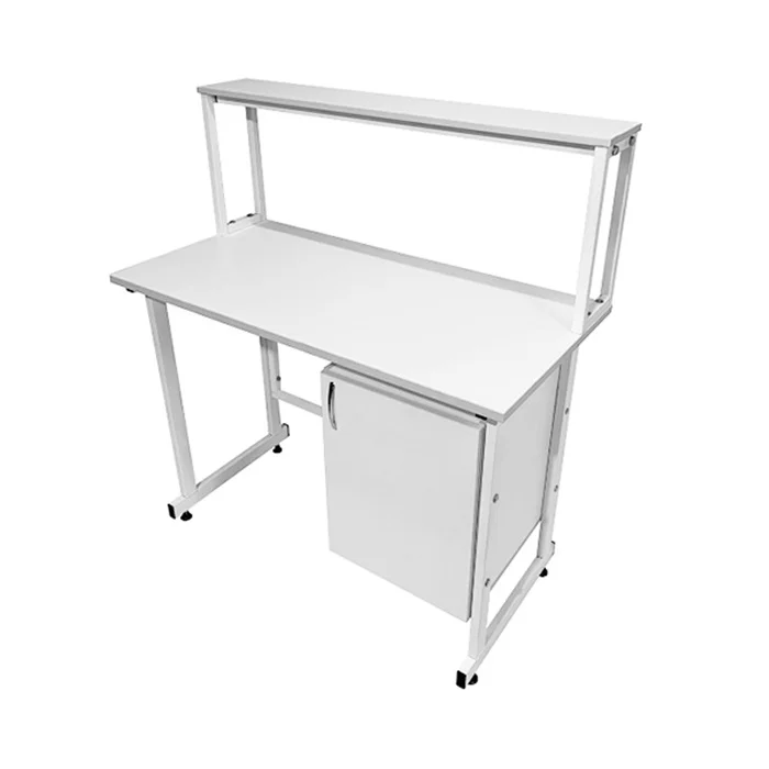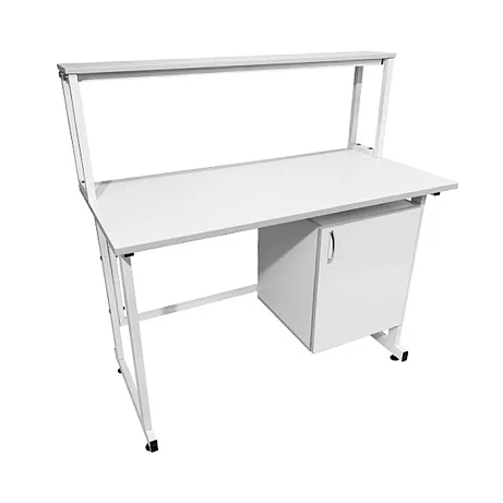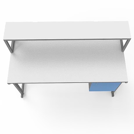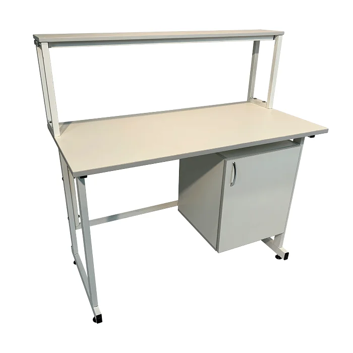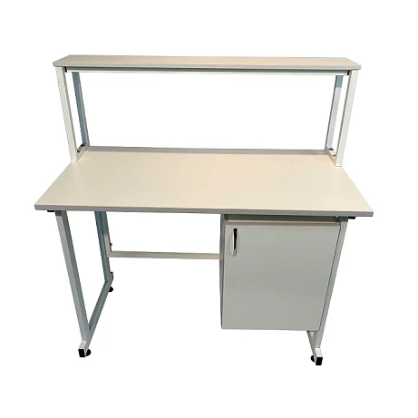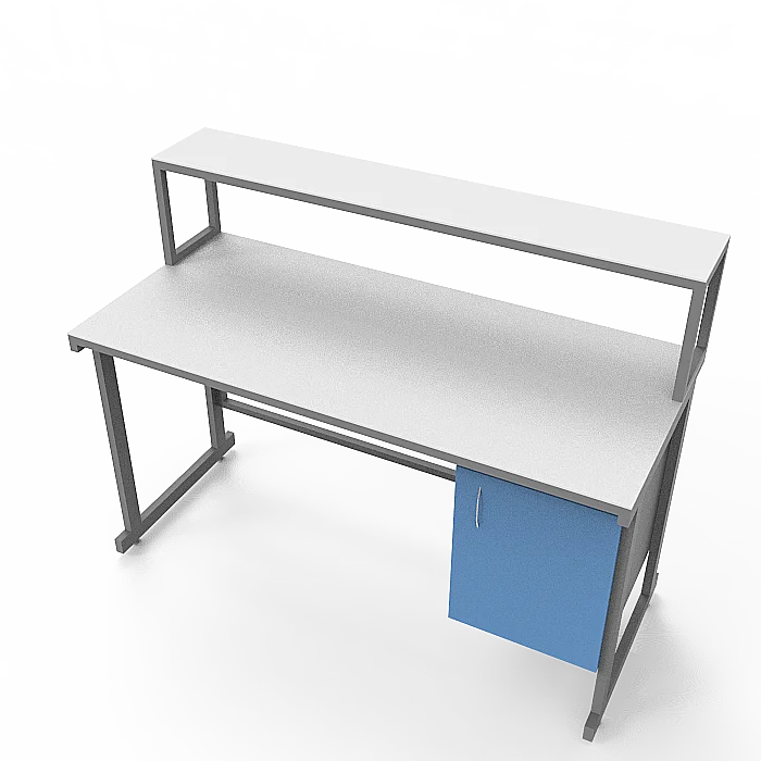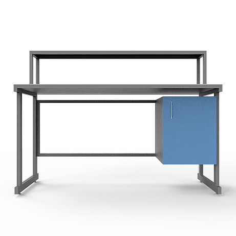 Стол оснащен подвесной тумбой, расположенной справа, с распашной дверкой и полкой внутри для удобного хранения различных материалов и инструментов. Внутренний размер тумбы составляет 368х444х428 мм, а размер вкладной полки подвесной тумбы - 365х440х16 мм, что позволяет безопасно хранить предметы с равномерно распределенной нагрузкой до 10 кг.