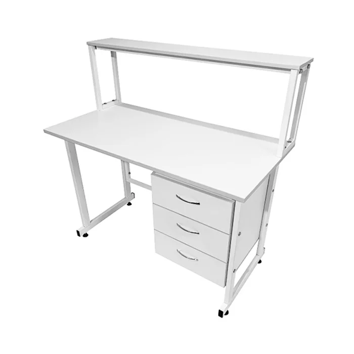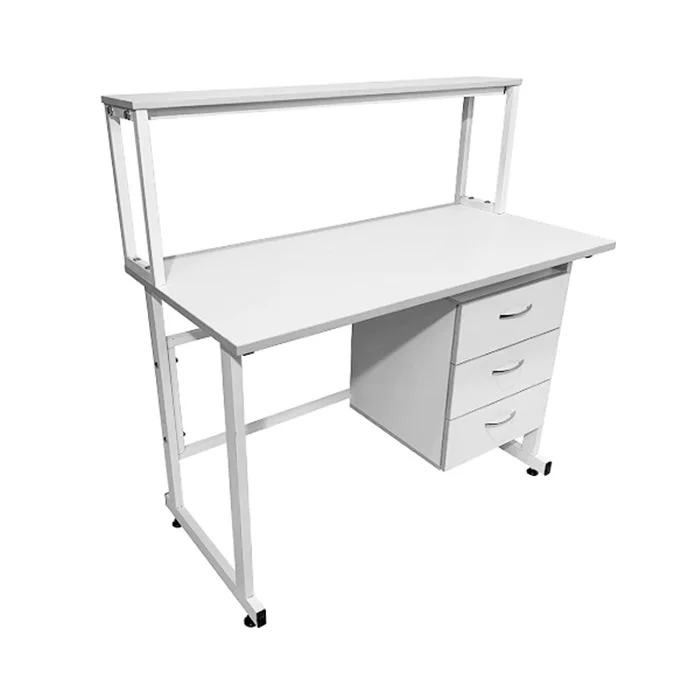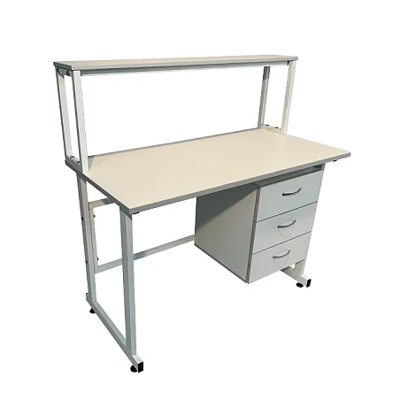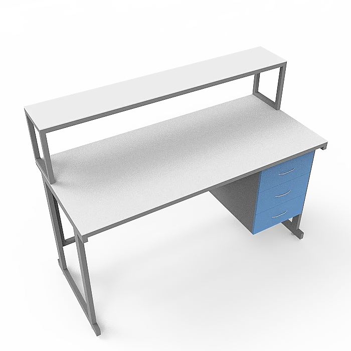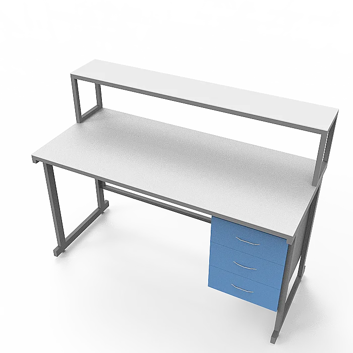 Этот стол оснащен подвесной тумбой, расположенной справа, с тремя выдвижными ящиками, предоставляющими удобное хранение и организацию различных материалов и оборудования. Внутренние размеры ящиков позволяют безопасно и компактно разместить предметы с равномерно распределенной нагрузкой до 10 кг на каждый ящик.
