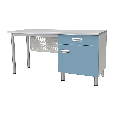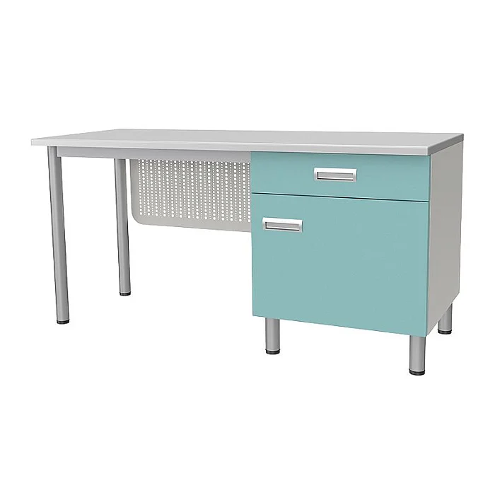 Стол лабораторный с тумбой, дверкой, полкой, и ящиком предназначен для организации рабочего места лаборанта, размещения оборудования и приборов, проведения химических и физических исследований.