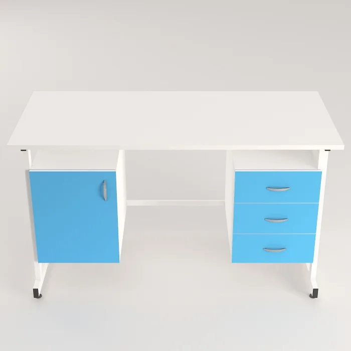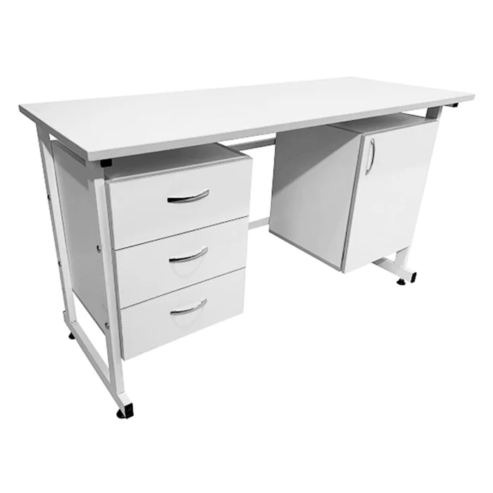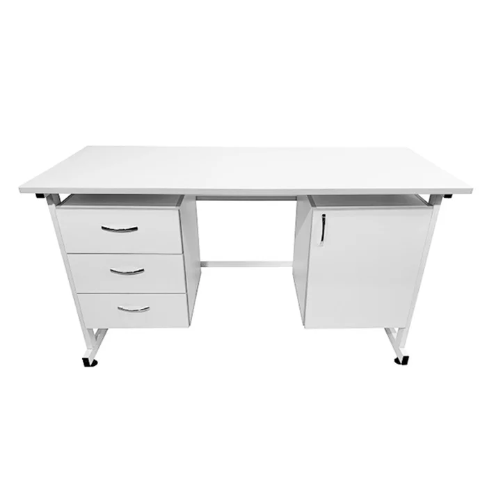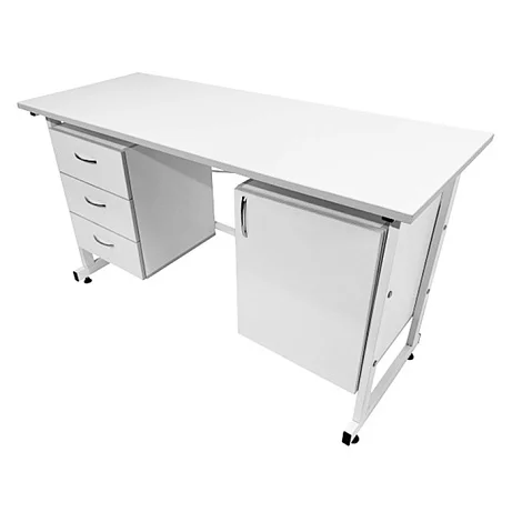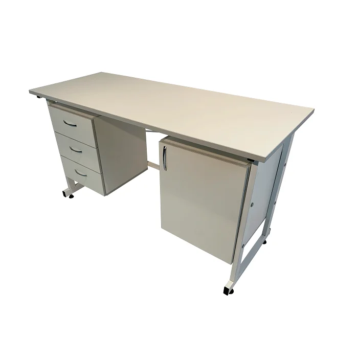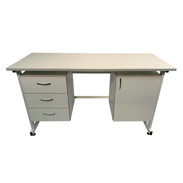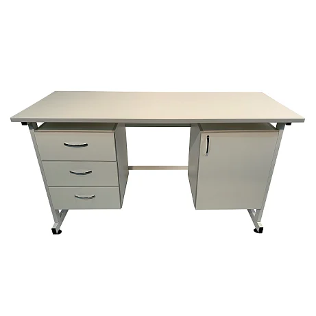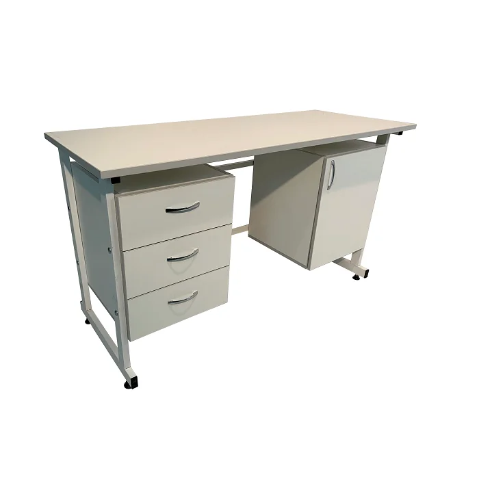 Для организации рабочего места в лабораториях и других медицинских учреждениях оптимально подойдет стол лабораторный СЛ 12.007. Столешница изготовлена из листа ЛДСП 600Х1500 мм толщиной 22 мм. Каркас имеет сварную конструкцию и выполнен из стального профиля 25Х50 мм, покрытого порошковой краской. Изделие оборудовано по бокам двумя тумбами, одна из которых оснащена тремя выдвижными ящиками. Регулируемые по высоте опоры ножек позволяют компенсировать неровности напольного покрытия. Лишь в официальном интернет-магазине завода-производителя «МедМебель» вы можете приобрести стол лабораторный СЛ 12.007 по самой низкой цене. В пределах Москвы приобретенные товары доставляются курьером, в другие регионы России доставка осуществляется транспортными компаниями.