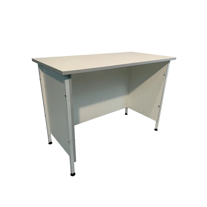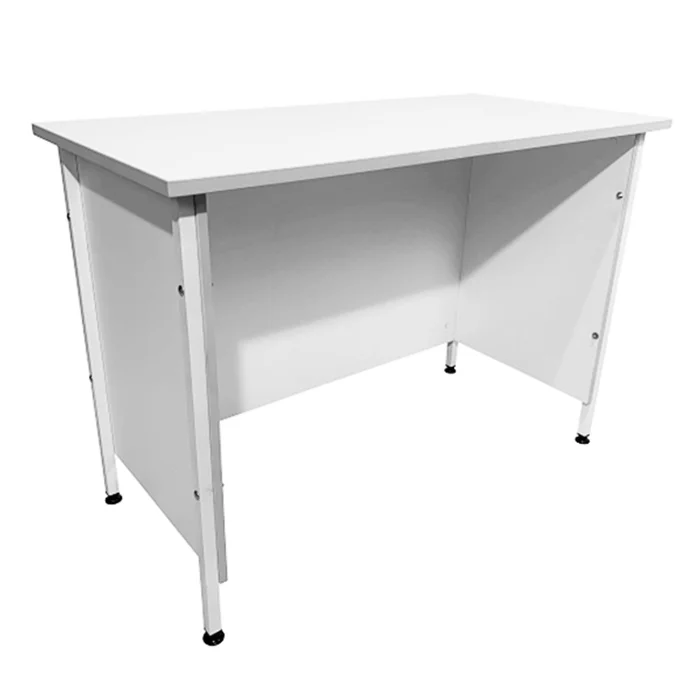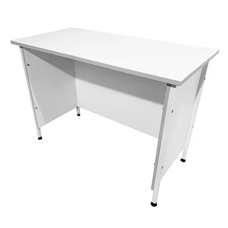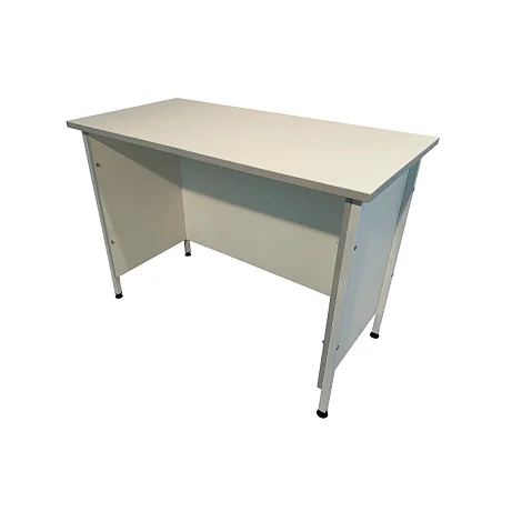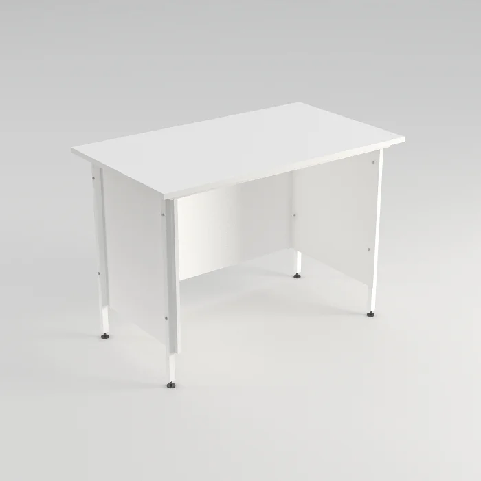 Ножки стола выполнены из стального профиля размером 25х25 мм и покрыты порошковой краской белого цвета, что придает конструкции прочность и стойкость к внешним воздействиям. Столешница из ЛДСП белого цвета с кромкой светло-серого оттенка имеет толщину 22 мм и размеры рабочей поверхности 1200х600 мм, способной выдерживать равномерно распределенную нагрузку до 60 кг.