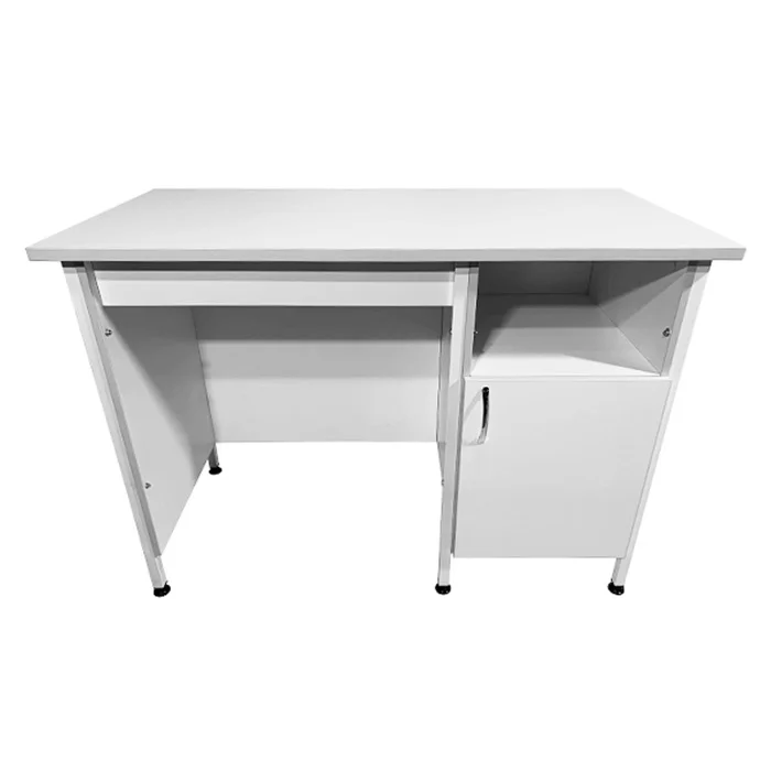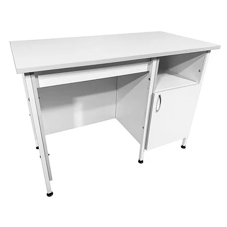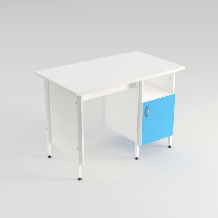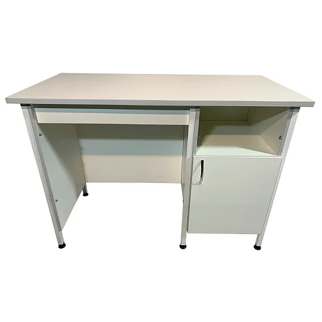Стол лабораторный СЛ 12.011 предназначен для установки в помещениях лабораторий или иных медучреждений. Каркас представляет собой стойки из покрытого порошковой краской стального профиля 25Х25 мм, которые обшиваются по бокам и с тыльной стороны листами ЛДСП (16 мм). Стол оборудован тумбой с вместительной открытой верхней нишей и нижним отделом с дверцей. Для придания изделию прочности под столешницей установлена дополнительная перемычка. Столешница выполнена из листа ЛДСП толщиной 22 мм. Опоры ножек регулируются по высоте, что позволяет устанавливать стол на неровных поверхностях. Стол лабораторный СЛ 12.011 компании «МедМебель» реализуется в официальном интернет-магазине производителя по самой низкой цене. Качество товара гарантировано. По Москве доставка курьером. Отправка товаров в регионы России осуществляется транспортными компаниями.