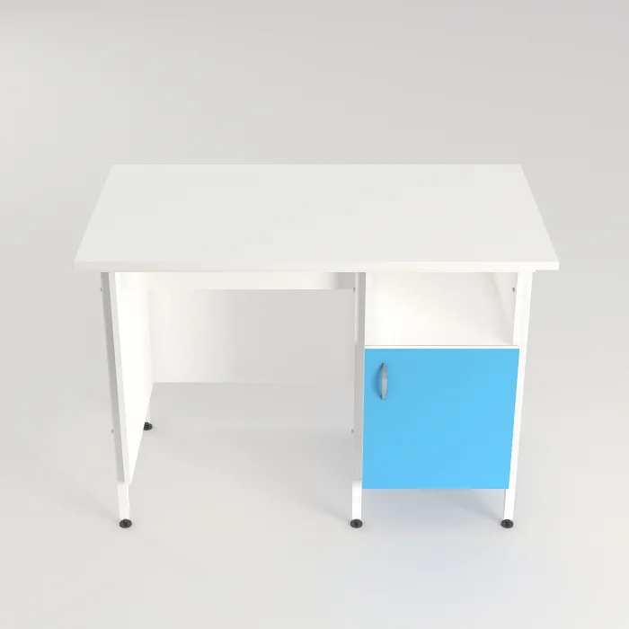 Тумба стола оснащена вместительной открытой верхней нишей и нижним отделом с дверцей справа, что обеспечивает удобное хранение различных предметов. Размеры внутреннего отделения тумбы составляют 368х502х664 мм, а полки в тумбе имеют размеры 365х500х16 мм. Полки и дно тумбы выдерживают равномерно распределенную нагрузку до 10 кг.