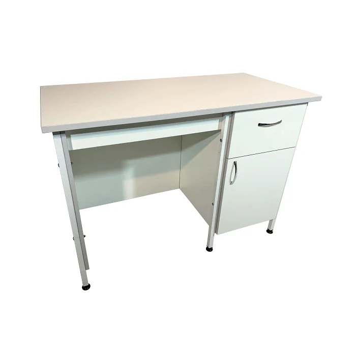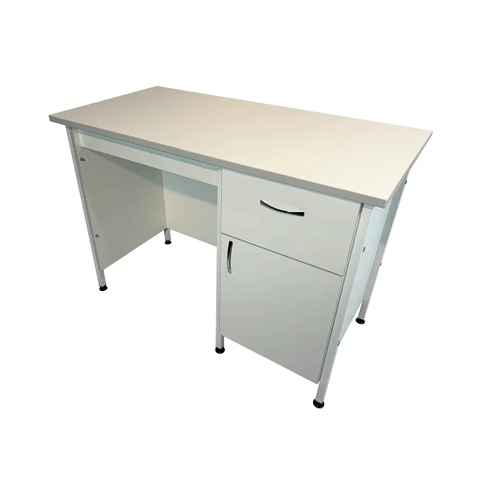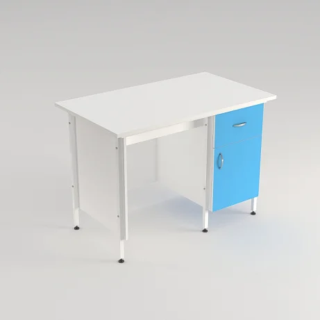 Стол лабораторный СЛ 12.013 служит для организации рабочего места сотрудников лабораторий или других медицинских учреждений. Стойки из покрытого порошковой краской стального профиля 25Х25 мм обшиты листами ЛДСП толщиной 16 мм. Они обеспечивают конструкции прочность и устойчивость. Столешница изготовлена из ЛДСП толщиной 22 мм, под которой с одной стороны расположена тумба, оборудованная выдвижным ящиком и отделом с дверцей. Регулируемые по высоте опоры ножек позволяют установить стол даже на полу с неровностями. Экономно приобрести стол лабораторный СЛ 12.013 вы всегда можете в официальном интернет-магазине компании «МедМебель», которая занимается производством медицинской мебели. По Москве товар развозит курьерская служба. Доставка в регионы возможна удобной для вас транспортной компанией.