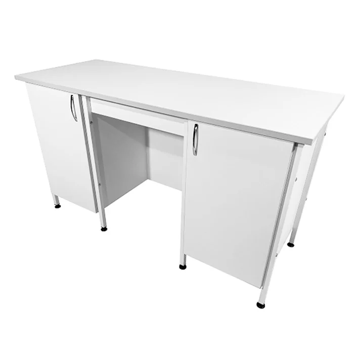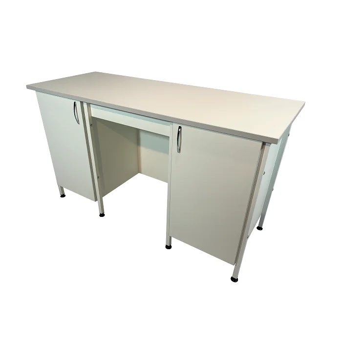 Стол лабораторный СЛ 12.014 может устанавливаться в лабораториях и других медучреждениях для организации рабочего места сотрудников. Устойчивость изделию обеспечивают шесть стоек-ножек из стального профиля 25Х25 мм, покрытого порошковой краской. Для обшивки каркаса стола используются листы ЛДСП толщиной 16 мм. По бокам располагаются две тумбы, оборудованные распашными дверцами. Опоры-регуляторы, установленные на ножках, легко компенсируют неровности напольного покрытия. Для изготовления столешницы используется ЛДСП толщиной 22 мм. Приобрести стол лабораторный СЛ 12.014 по цене производителя вы можете в официальном интернет-магазине компании «МедМебель». Высокое качество товаров гарантировано. Отправка товаров в регионы России возможна транспортными компаниями. По Москве работает курьерская служба.