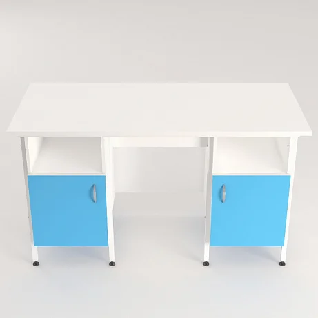 Стол оборудован двумя тумбами с открытой верхней нишей и нижним отделом с дверцей для удобного хранения различных материалов и инструментов. В каждой тумбе предусмотрена одна полка, размер которой составляет 365х500х16 мм. Внутренние размеры тумбы - 368х502х664 мм, а равномерно распределенная нагрузка на нишу, дно тумбы и полку составляет 10 кг.