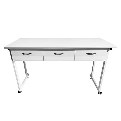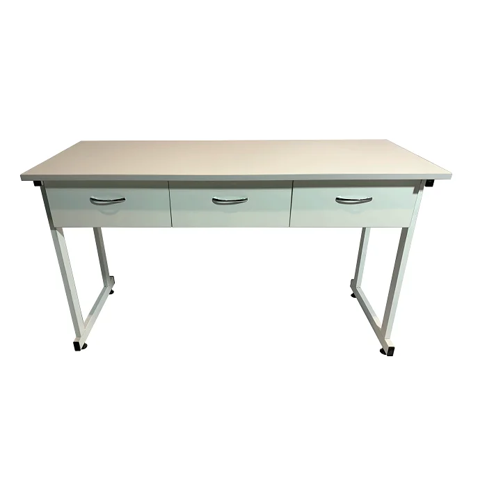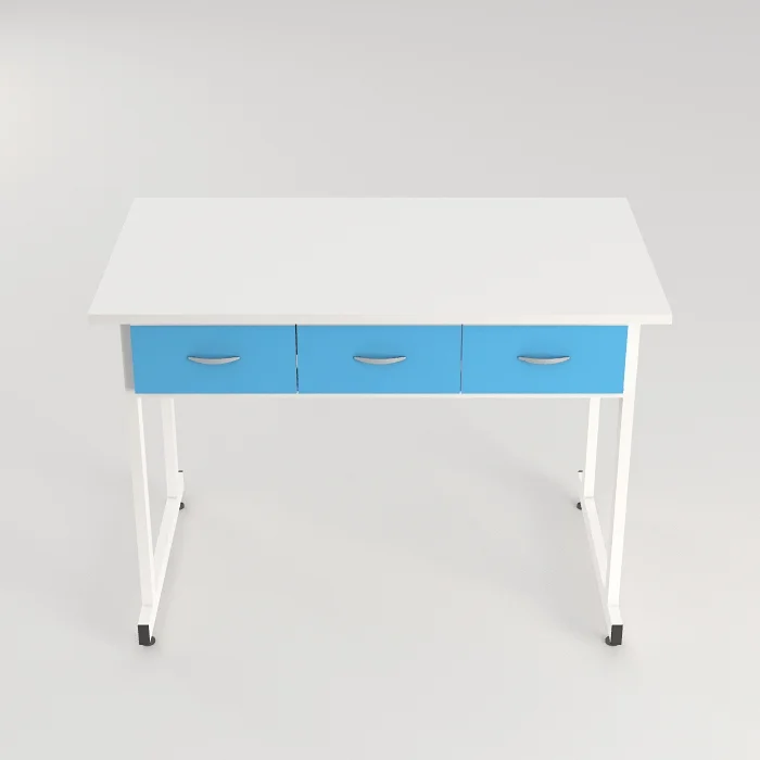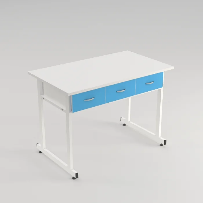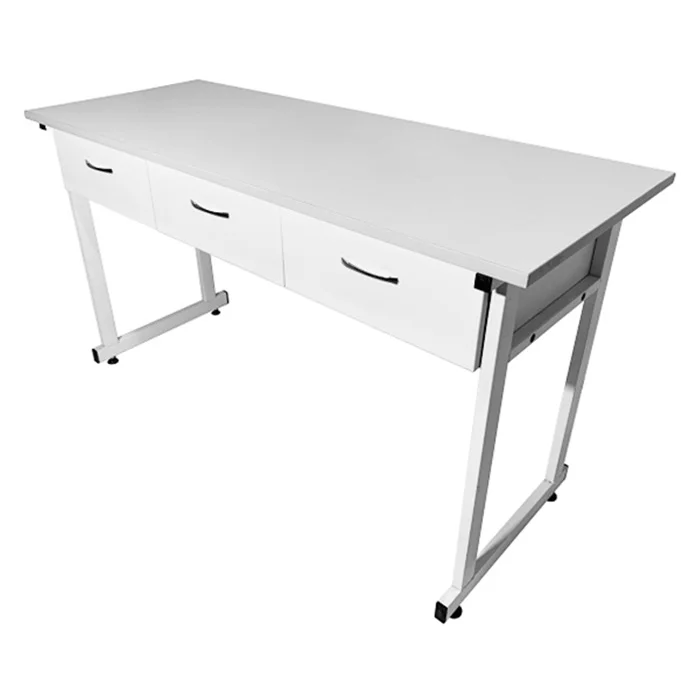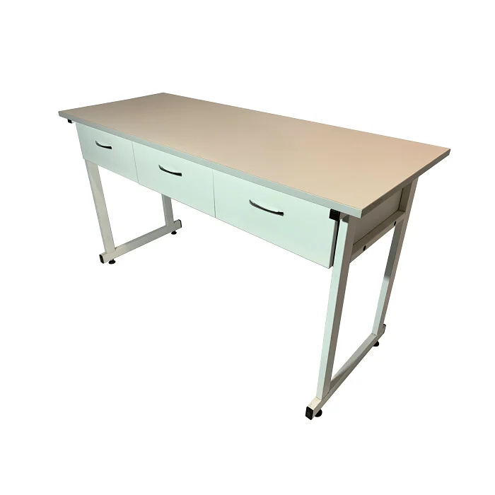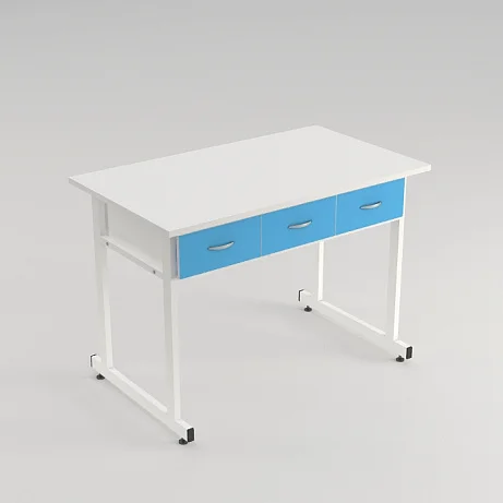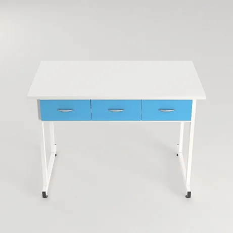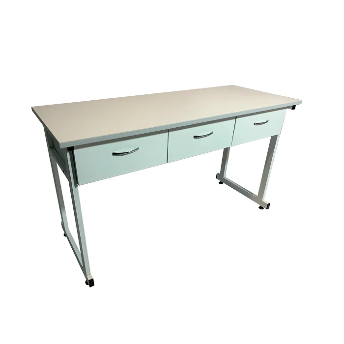 Компактный стол лабораторный СЛ 12.022 будет очень полезен в небольших лабораториях. Жесткость конструкции обеспечивает сварной каркас из стального профиля 25Х50 мм, покрытого порошковой краской. Столешница представляет собой лист ЛДСП 1200Х700 мм и толщиной 22 мм. Под столешницей размещена ниша с тремя выдвижными ящиками, материалом для которых служит ЛДСП толщиной 16 мм. На ножках установлены винтовые опоры, которые помогают компенсировать неровности пола при установке мебели. Купить с хорошей выгодой стол лабораторный СЛ 12.022 по цене производителя вы всегда можете в интернет-магазине «МедМебель». Курьер быстро доставит товар в любую точку Москвы. По России товары доставляются транспортными компаниями.