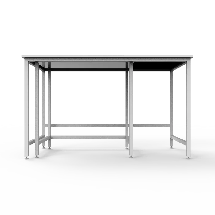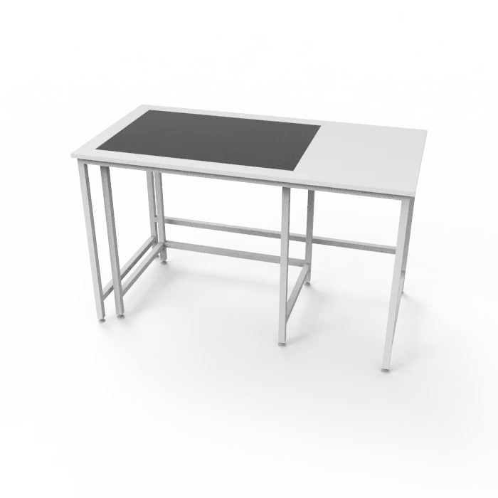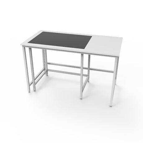 Лабораторный стол обладает прочным каркасом из стального профиля, покрытого порошковой краской, что обеспечивает надежность, устойчивость и долговечность всей конструкции. Столешница выполнена из отполированной гранитной плиты, что делает ее идеальным материалом для весового оборудования, обеспечивая стабильность и точность измерений.
