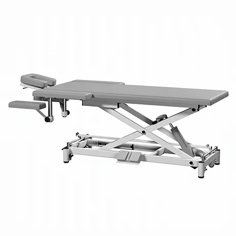 Подлокотники расположены по обеим сторонам в области головы; их положение настраивается резьбовыми фиксаторами. Такое решение добавляет расслабления плечевому поясу и делает стол удобнее для длительных сеансов.
