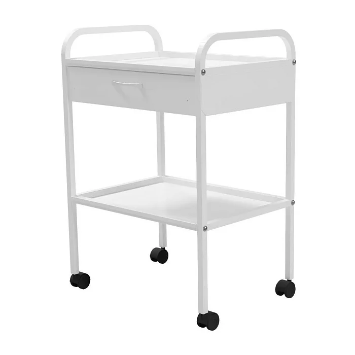 Стоимость указана за столик с колесами из пластика и полками металл.