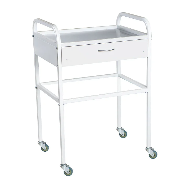 Манипуляционный стол для медицинских инструментов, идеально подходящий для процедурных кабинетов. Этот стол разработан с учетом всех требований стерильности и удобства, обеспечивая высокий уровень организации рабочего пространства для врача и медицинской сестры. Благодаря своей прочной конструкции и эргономичному дизайну, он идеально вписывается в лабораторные и процедурные помещения. Стол медицинский имеет регистрационное удостоверение, подтверждающее его соответствие медицинским стандартам.