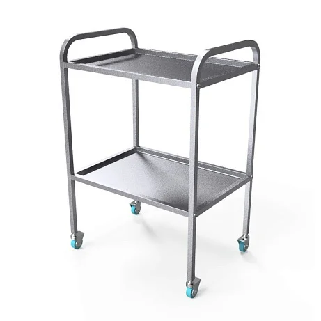Две удобные полки обеспечивают легкий доступ к инструментам, а колеса из серой резины позволяют без труда перемещать стол в пределах помещения. Этот манипуляционный стол имеет сертификат соответствия медицинским стандартам, что подтверждает его высокое качество. Заказав этот стол, вы получите надежного помощника, который сделает рабочий процесс более комфортным и организованным.