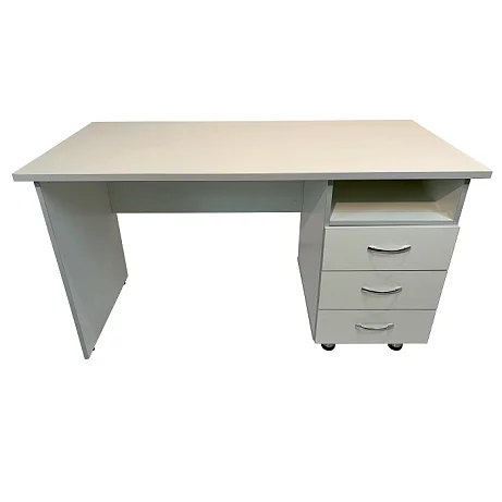 Столешница выполнена из прочной ламинированной ДСП толщиной 22 мм и имеет размеры рабочей поверхности 1300х600 мм. Она способна выдерживать равномерно распределенную нагрузку до 60 кг. Столешница окантована кромкой ПВХ толщиной 2 мм, что обеспечивает ее защиту от повреждений и придает столу аккуратный вид.