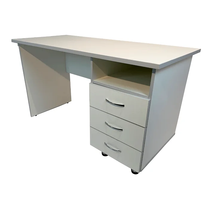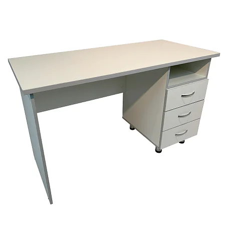 Стол медицинский однотумбовый MD СМ 10.08 выполнен в белом цвете ЛДСП со светло-серой кромкой, что придает ему современный и стильный вид, легко вписывающийся в интерьер любого медицинского кабинета. Модель поставляется в разобранном виде для удобства транспортировки и самостоятельной сборки.