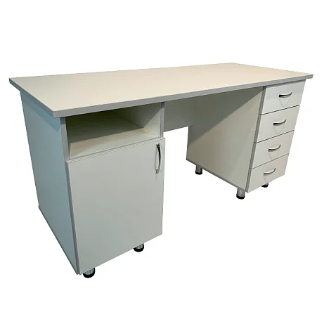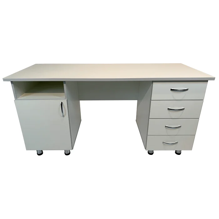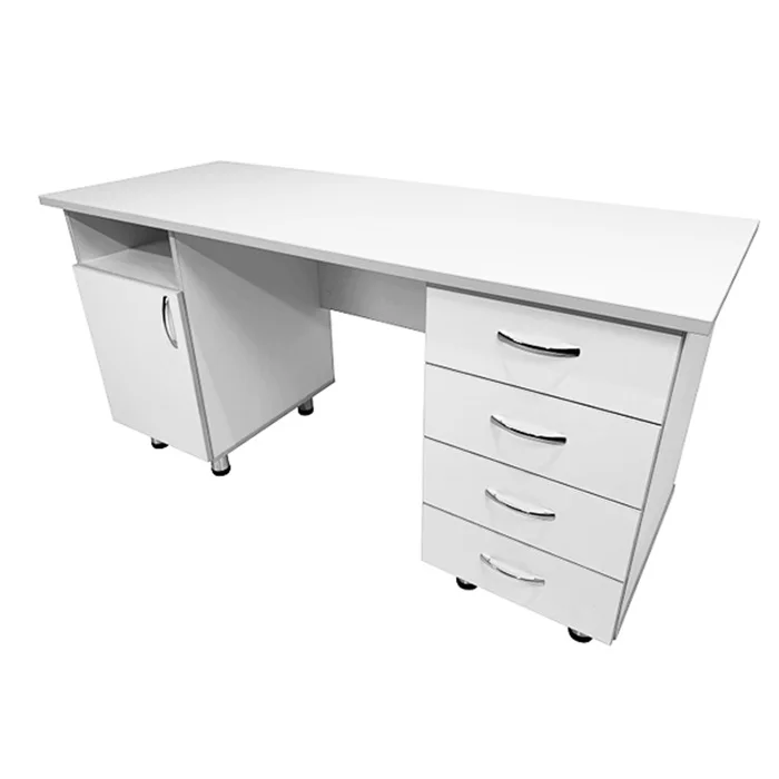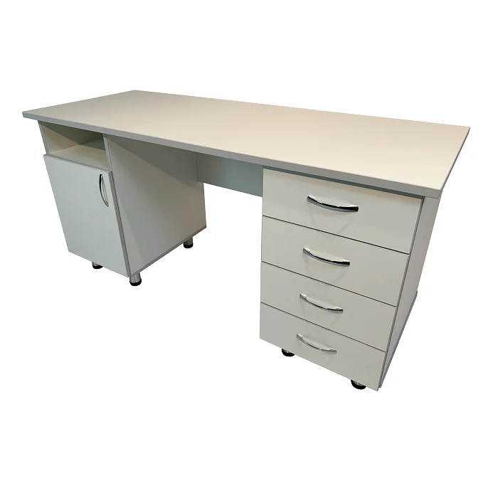 Стол медицинский MD СМ 10.10 поможет оптимизировать рабочее место сотрудников медицинских учреждений. Для изготовления стола используется ЛДСП толщиной 16 мм. Материалом для столешницы служит ЛДСП толщиной 22 мм. Стол оборудован двумя боковыми тумбами, одна из которых оснащена нишей и отделом с дверкой, а вторая укомплектована выдвижными ящиками. Высота ножек может варьироваться с помощью винтовых опор. В интернет-магазине «МедМебель» можно очень выгодно приобрести стол медицинский MD СМ 10.10 по цене производителя. Возможна отправка товаров в любой город России транспортными компаниями. По Москве работает служба доставки.