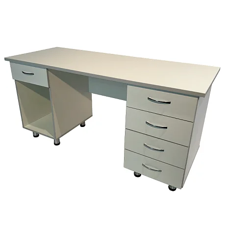 Этот стол устанавливается на две тумбы, каждая из которых имеет четыре регулируемые по высоте опоры высотой 100 мм. Изготовлен в соответствии с высокими стандартами качества для обеспечения долговечности и удобства использования. MD СМ 10.14 - отличный выбор для создания комфортного и организованного рабочего места в медицинских учреждениях, сочетающий в себе функциональность и стильный дизайн.