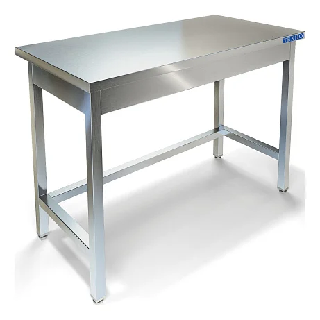Простой и практичный стол для пищевого производства и магазинов: столешница из AISI 304 — гигиенична и устойчива к коррозии, под неё спрятано усиление из ЛДСП 32 мм для ровной и жесткой поверхности. Лёгкий в сборке разборный каркас — труба 40×40 из AISI 304, а обвязка 40×20 из AISI 430 добавляет жёсткости и экономит бюджет. Регулируемые опоры нивелируют неровности пола, делая рабочее место удобным и стабильным.