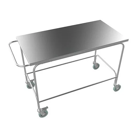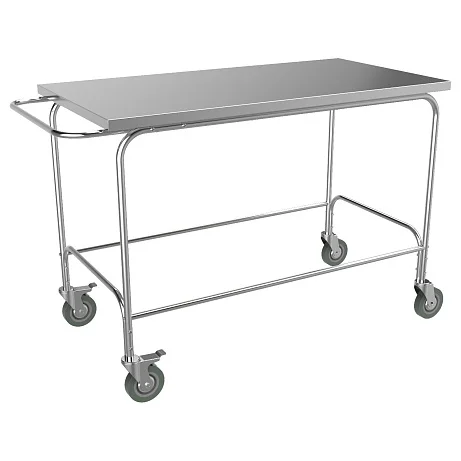 Стол (тележка) Боброва инструментальный для операционных «Айболит» СИП-1200 — удобное передвижное решение для операционной, когда важно держать всё необходимое под рукой и при этом легко перемещать оснащение между рабочими зонами. Он рассчитан на размещение и аккуратную транспортировку медицинских инструментов, приборов и аппаратов, лабораторной посуды, а также перевязочных и расходных материалов, которые используются во время хирургических процедур.