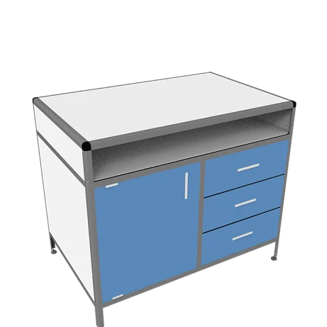 Эта модель стола-тумбы идеально подойдет для организации рабочего пространства в лабораторных условиях и медицинских учреждениях, обеспечивая удобство, функциональность и эффективное использование пространства.