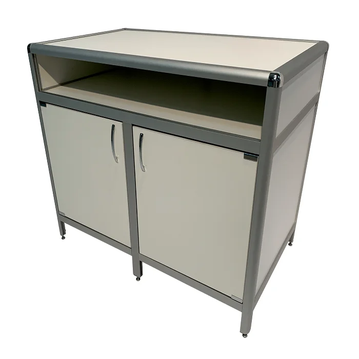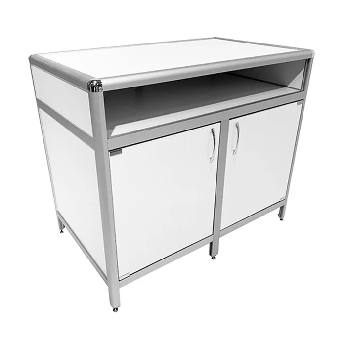 Стол-тумба лабораторная MED 12.009al предназначается для установки в лабораториях или других медицинских учреждениях и служит для размещения различных приборов и предметов. Благодаря каркасу из алюминиевого профиля и обшивке из ЛДСП (8 мм), тумба обладает достаточной прочностью и устойчивостью. Столешница изготовлена из ЛДСП (16 мм). Под столешницей располагается обширная ниша, а ниже размещены две тумбы с дверками. Ножки оборудованы опорами-регуляторами. Только в интернет-магазине «МедМебель» вы можете приобрести стол-тумбу лабораторную MED 12.009al по цене производителя. Мы тщательно контролируем качество всей продукции. Отправка в регионы России осуществляется транспортными компаниями, по Москве товары развозит курьерская служба.