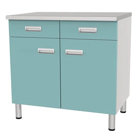 Возможные цвета фасада (по запросу): голубой (RAL 5024), зеленый (RAL 6027), белый (RAL 9016). Стоимость указана за стол-тумбу в белом цвете.