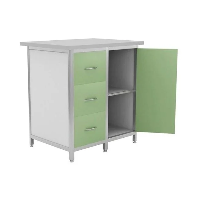 Стол-тумба лабораторный СТЛК-Л-05 используется в медицинских и других лабораториях. Оснащен большой тумбой с полкой и распашной дверкой, а также тремя вместительными выдвижными ящиками. Столешница изготавливается из ЛДСП толщиной 22 мм. Заполнителем алюминиевого каркаса является ЛДСП. Ножки могут регулироваться по высоте. На сайте магазина МедМебель предложена самая низкая цена на медицинскую мебель. Купите стол-тумбу лабораторный СТЛК-Л-05 прямо сейчас. Доступна услуга адресной курьерской доставки по Москве.